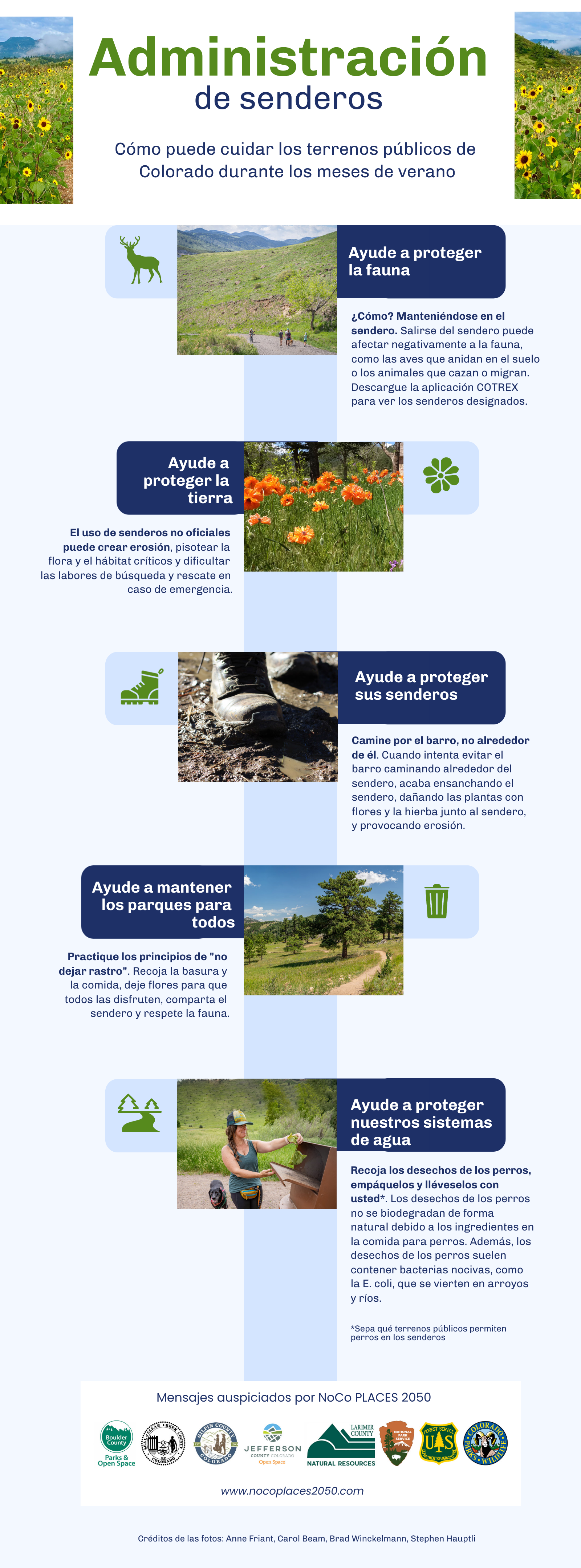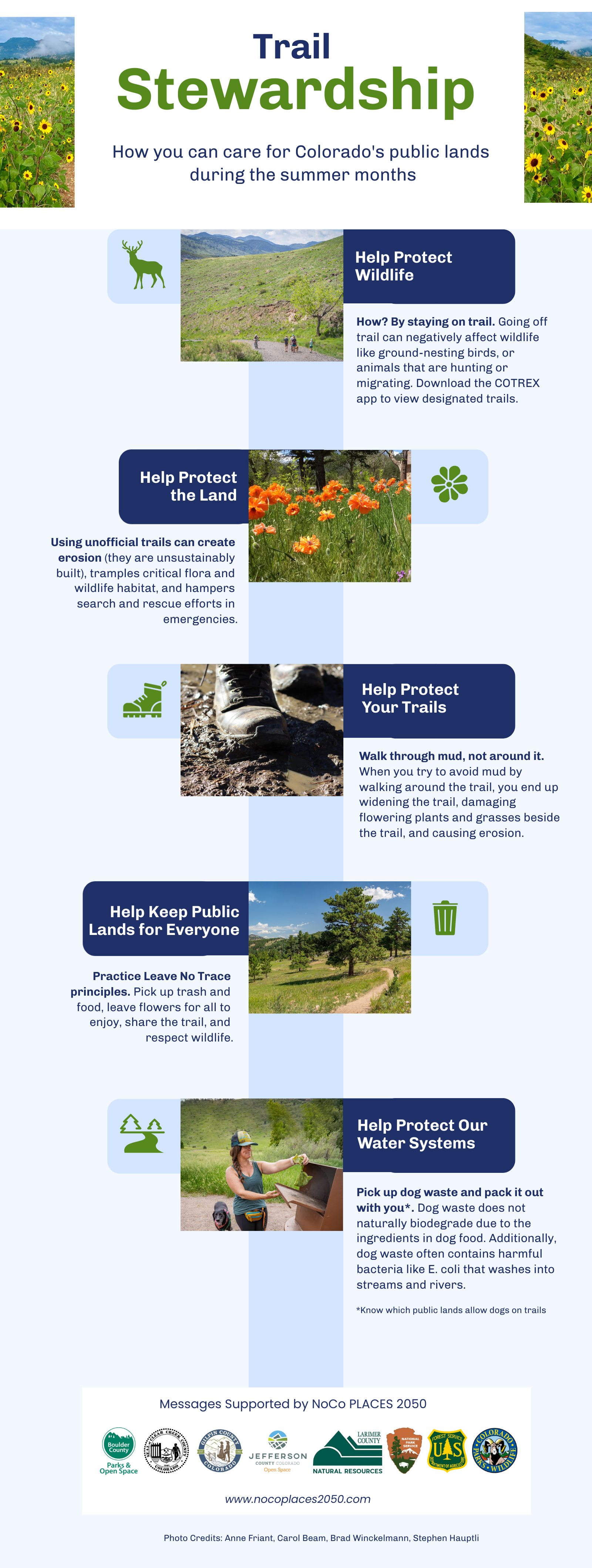Our collaborative efforts include the creation of common messaging of which all eight NoCo Places agencies stand behind. Sharing land stewardship and safety messages across county, state, and federal public land management agencies helps to increase the likelihood of the messages sticking with the visitors to public lands.